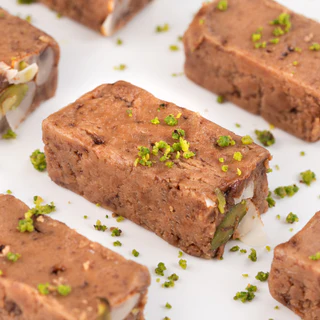 Khoa Ilaichi Barfi is a traditional Indian sweet made from pure, slow-cooked khoa (mawa) blended with fragrant cardamom (ilaichi). The mixture is cooked until it reaches a soft, fudgy consistency, giving each piece a creamy texture and a naturally rich, milky flavor.
